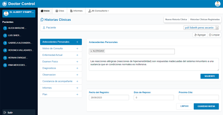 Doctor Control es un sistema multiusuario desarrollado para la facil gestión de pacientes y historias clínicas digitales.